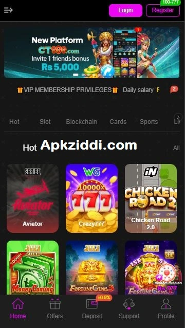Front Page Features of ZS777 Game APK:
